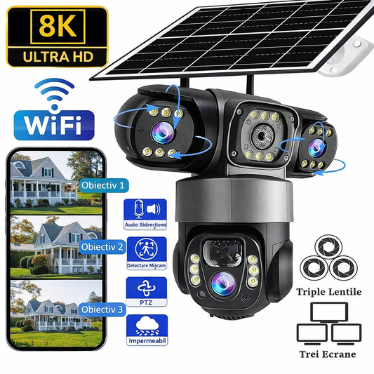AiWiFiCamera™ Solar 8K - Vezi tot. Oriunde. Fără cabluri.