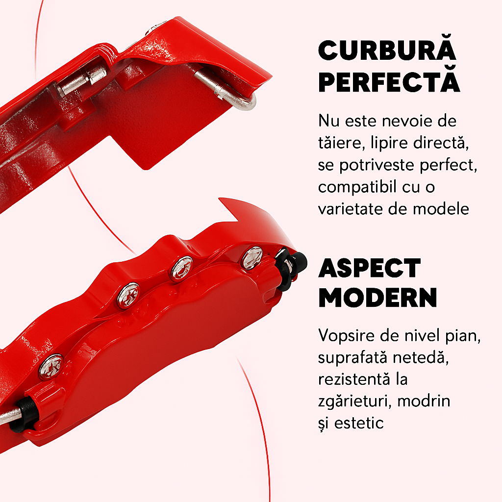 Etrierele se montează peste cele originale, creând un aspect sportiv instant pentru roți. Designul se potrivește exact datorită scanării laser și sunt disponibile în culori vibrante.