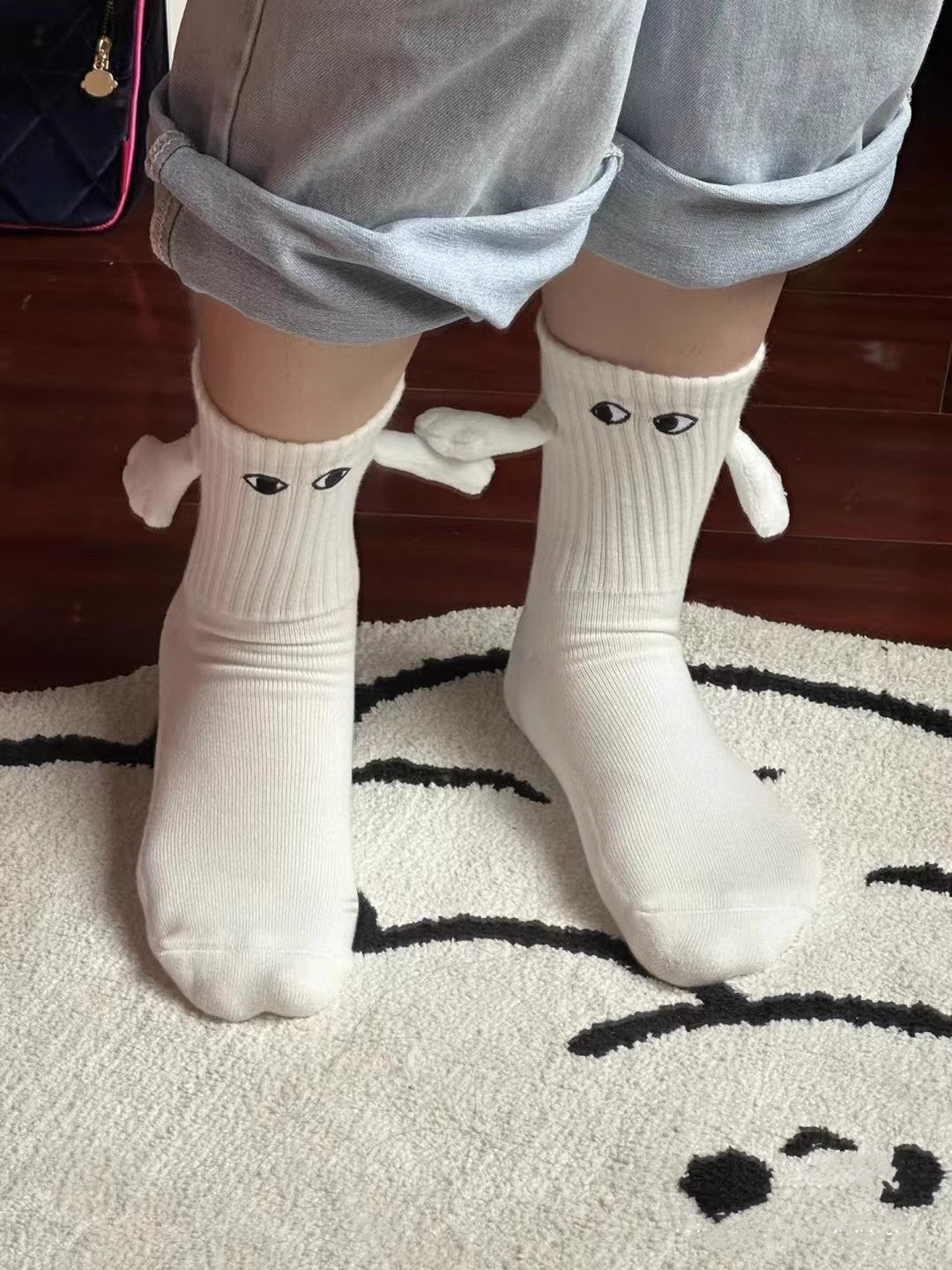 Conexiune magnetică: aceste șosete vin cu o conexiune magnetică, permițând cuplurilor să se țină de mână chiar și atunci când poartă pantofi. Cadou minunat: Aceste șosete sunt un cadou minunat pentru familie și prieteni pentru Crăciun, Halloween, Ziua Recunoștinței, zile de naștere și multe altele. Descriere Material: Bumbac Dimensiune: O mărime